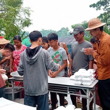 The Htu Byan Bi Family Celebrated the Thadingyut Festival (Festival of Lights) by Hosting a Satuditha (စတုဒီသာ-Free Meal Offering). They generously donated white rice, mixed vegetable dhal (lentil curry), and fried dried fish to the community (November, 2025).